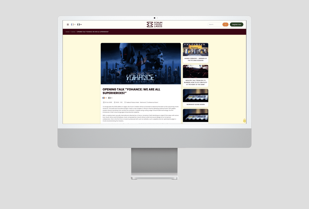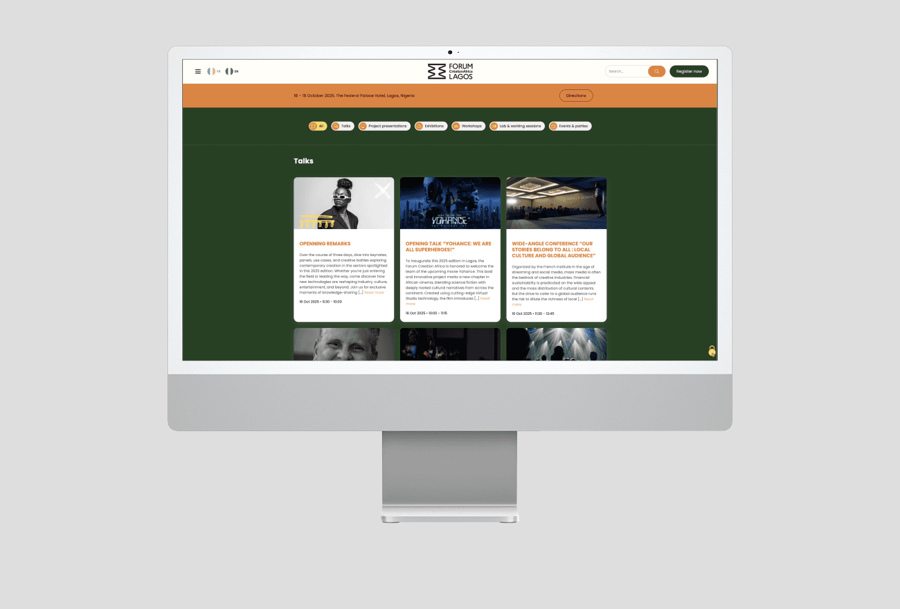 We entered the work by immersing the practice in Lagos’s creative landscape and the Franco-African diplomatic context, seeking to understand the cultural nuances before shaping a single design element. | We built a cohesive visual architecture that could travel across borders and mediums. Working alongside a local Nigerian production partner, we translated strategic intent into a physical and digital system, ensuring rigorous international standards met deep local resonance. | A comprehensive, bilingual brand experience that anchored the forum. From ten-second billboard animations to immersive venue wayfinding, the identity held the complexity of the convening without losing its creative vitality. |